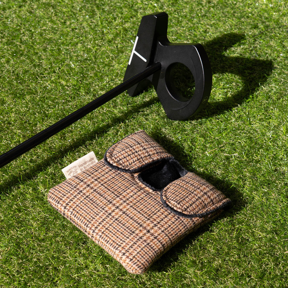 The Ashbrooke features a timeless Glen Plaid design, perfect for complementing the elegant look of mallet putters. Its natural tones and understated colours blend seamlessly with the golf course aesthetic, offering a refined yet subtle style.