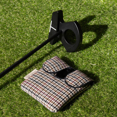 Designed with the same attention to detail as its blade counterpart, the Oakfield mallet putter cover is crafted from deadstock houndstooth wool blend in cream, black, ochre, and bordeaux. The suiting-weight wool delivers a luxurious, structured feel while evoking classic British tailoring.